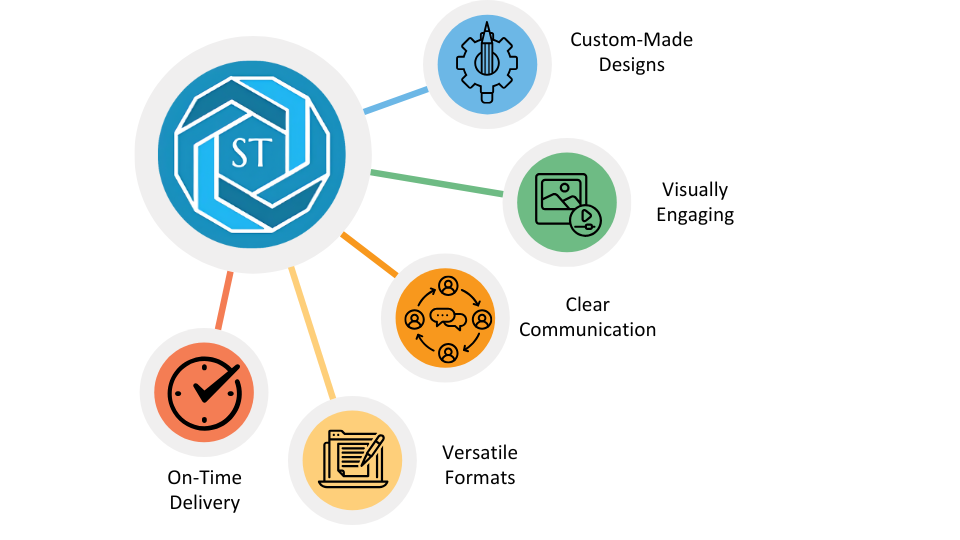 - Bespoke Illustrations & Graphics: Unique visuals to elevate the aesthetic and impact of your brochure