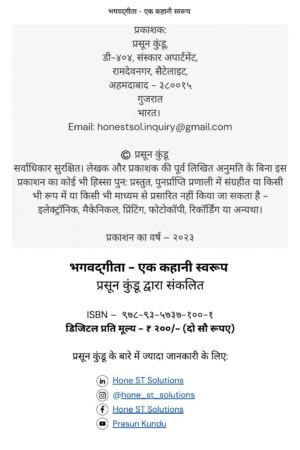 This book also includes The Bhagavad Gita in original Sanskrit text for you to refer to the same while reading it as a story in the language of your choice. To facilitate your reading in original Sanskrit text, subscribe to our YouTube channel Prasun Kundu which is equipped with a play list on ‘Bhagavad Gita Chanting Tutorials’. This comes absolutely free enabling learning at your convenience!
