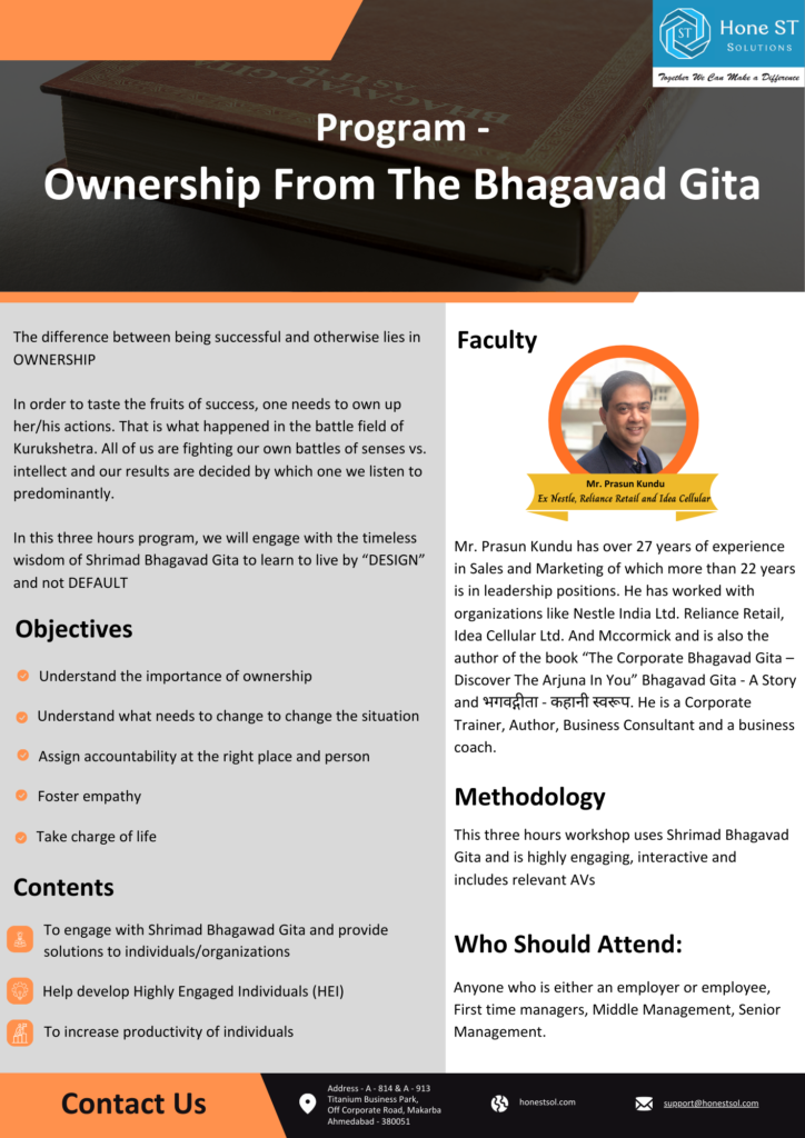 The difference between being successful and otherwise lies in ownership. To taste the fruits of success one needs to own up to their actions much like the battlefield of Kurukshetra in the Bhagavad Gita. The program highlights the battle between senses and intellect emphasizing that our results are decided by whom we choose to listen to predominantly.